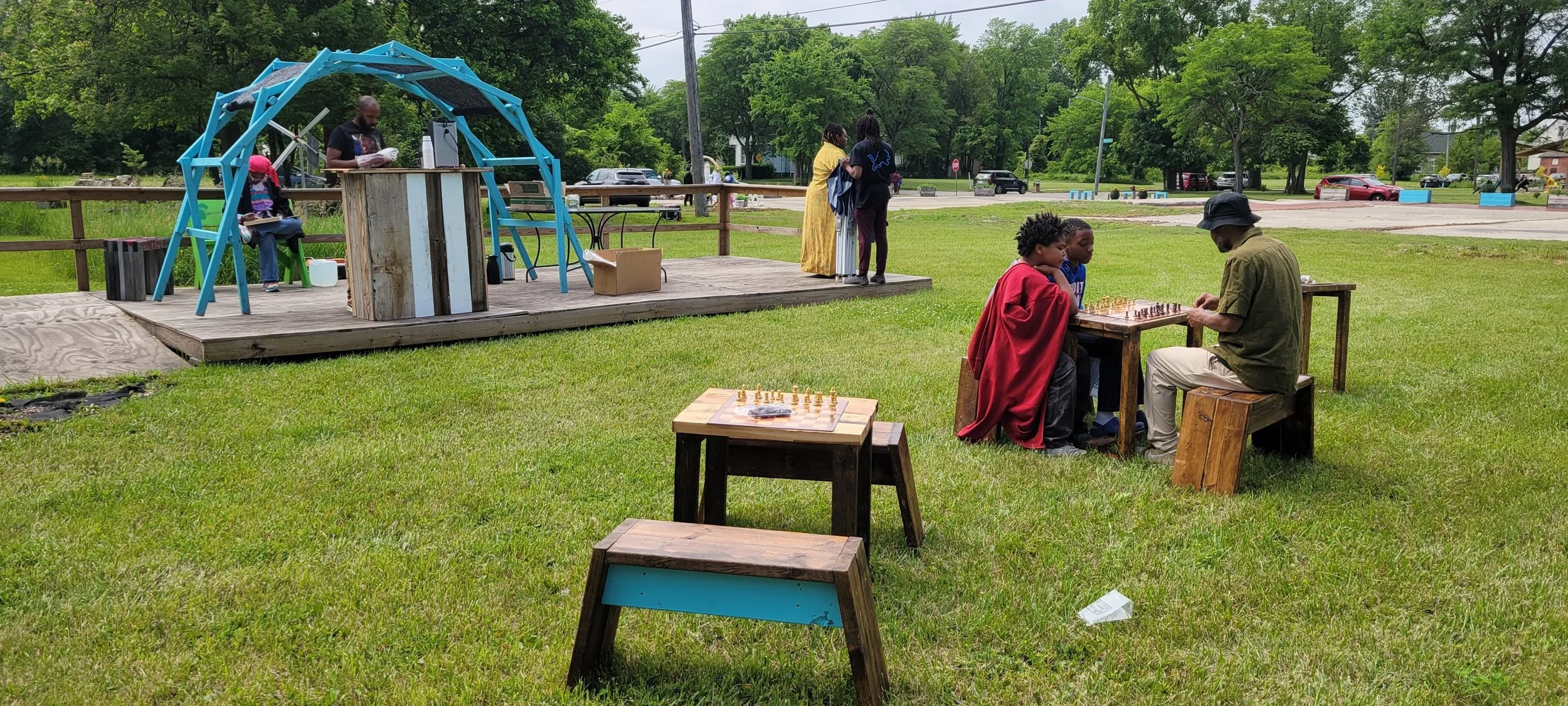 Activation Days are an opportunity to pause and reflect together. While gathered on the land, neighbors share their Learning Dreams through conversation and surveys—naming skills they want to develop, workshops they hope to attend, and knowledge they’re excited to share. Community members were invited to imagine how the land could continue to grow as a place for learning, healing, and creativity. Local vendors, DJs, Arts & Crafts, Chess, Pizza and more create and energizing day of connections. Stay tuned to our calendar to attend!