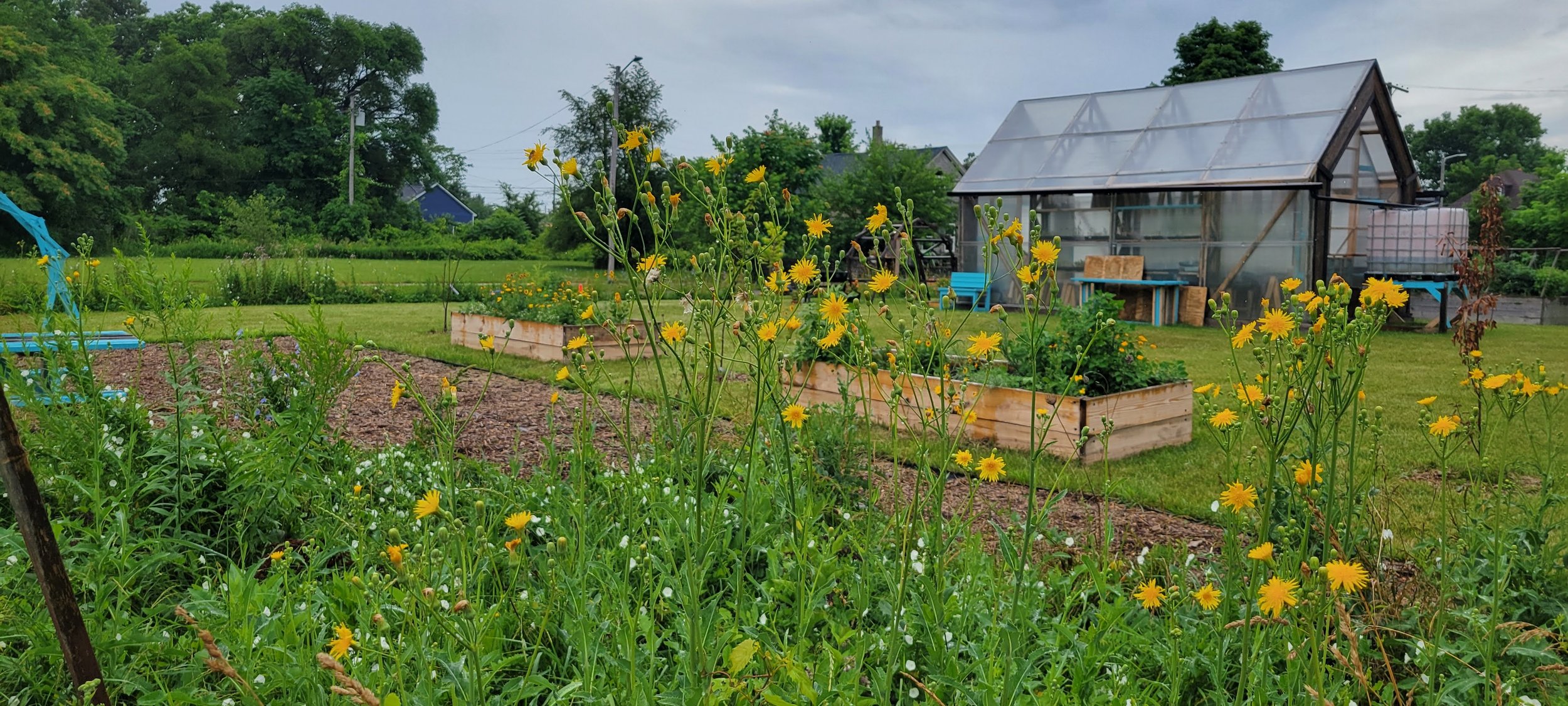 Freedom Dreams hosts a summer program in partnership with Grow Detroit's Young Talent. For six weeks, youth aged 14 to 21 learn the skills to Grow Food, Identify Plants, Assess Community Assets & Needs, and Build Public Infrastructure through the Design//Build process. Their learning is deeply place-based, with every lesson rooted by history, lived experience, and enacting solutions for the community. Some of these solutions have included garden beds for food production and beauty, shade pavilions and benches to encourage public gathering to support culture and community safety, and trash bins on every street corner to build pride and beauty for the community. We empower our youth to be active community members, following the ethos that our communities are up to us.